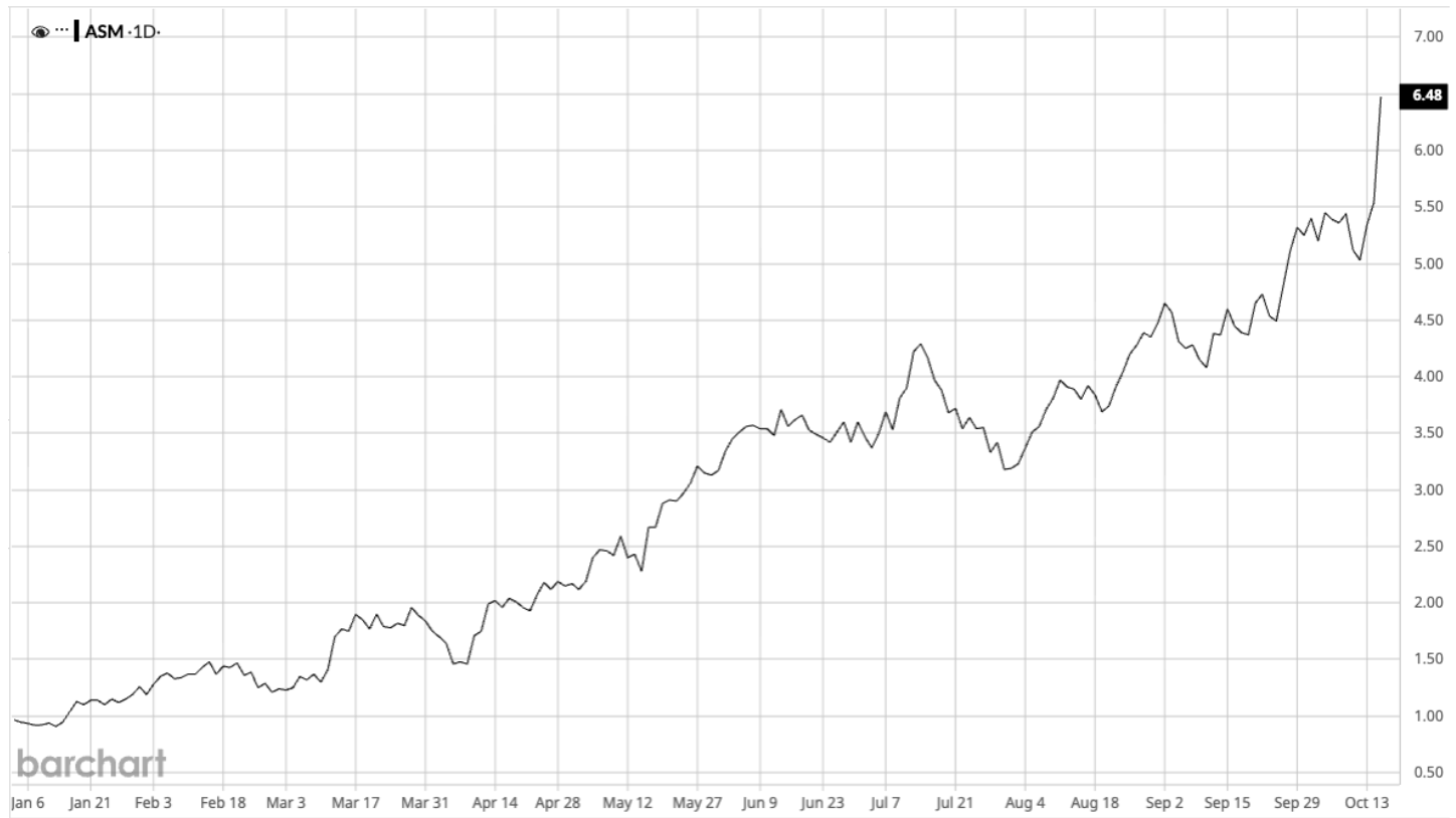 Or take Avino Silver and Gold Mines Ltd. (NYSE American: ASM).