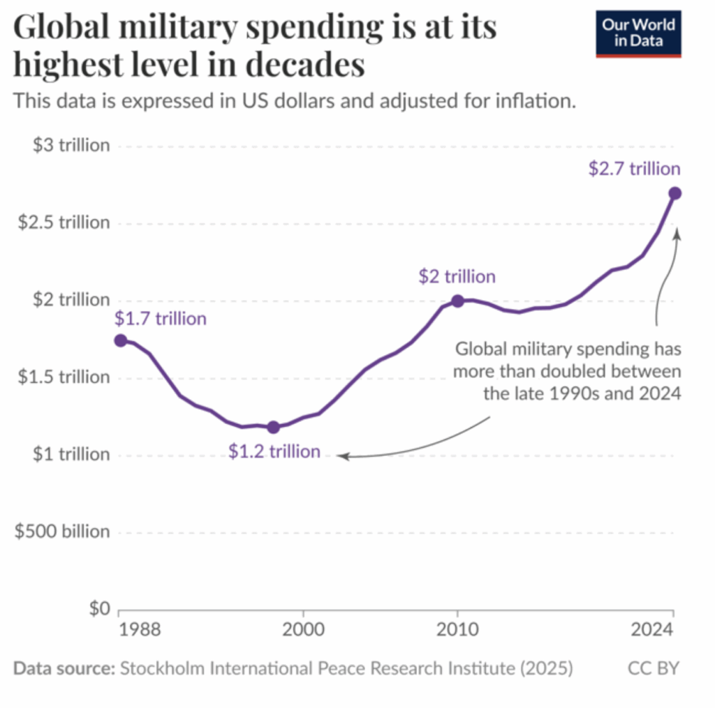 IMAGE SOURCE: https://ourworldindata.org/data-insights/in-2024-global-military-spending-reached-its-highest-level-in-decades